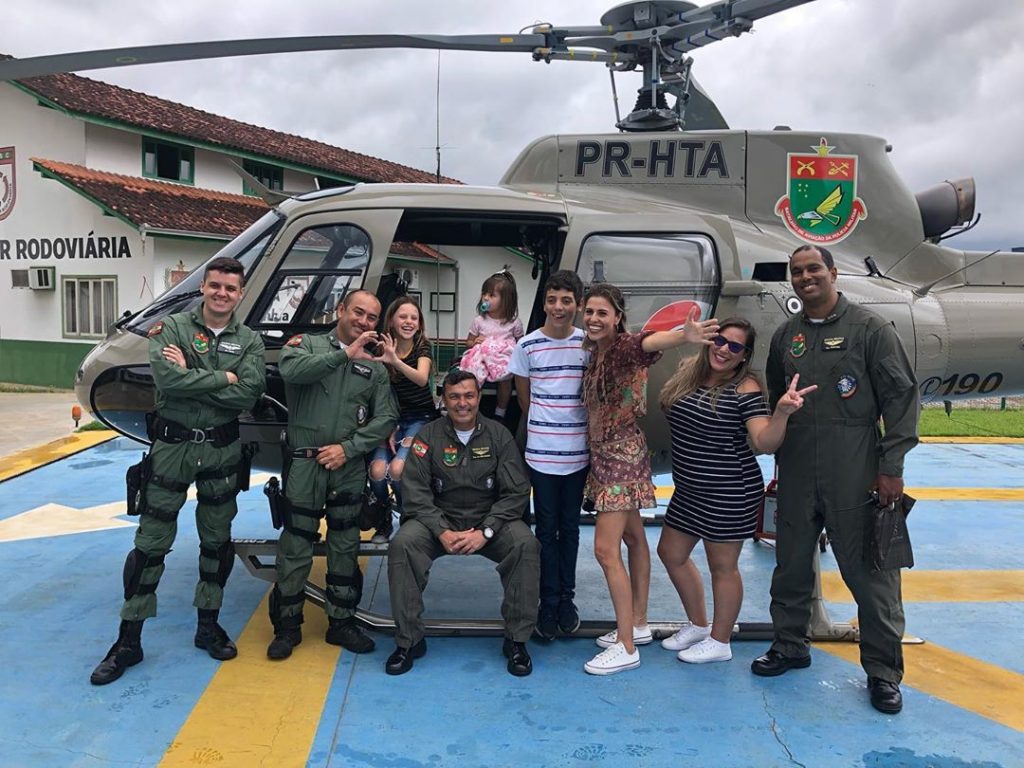 Menina de 11 anos visita equipe do helicóptero Águia 1 após ser salva em Itapoá/SC