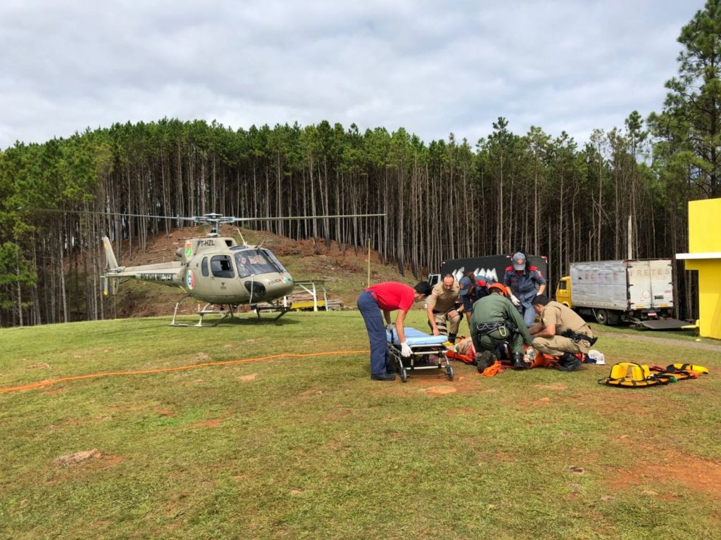 Águia 04 da PM resgata homem que caiu de despenhadeiro no Morro da Cruz, em Lages