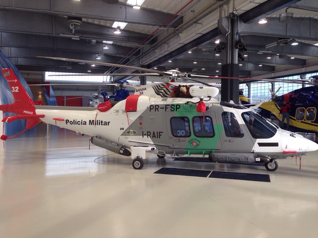 O GRPAE – Grupamento de Radiopatrulha Aérea da Polícia Militar de São Pauloestá prestes a receber seu mais novo helicóptero, o biturbina Agusta AW109 Grand New – batizado como Águia 32. O Helicóptero se encontra em fase final de acabamento, na fábrica da Agusta Westland, na Itália, e até o final de novembro deverá voar para São Paulo, onde será entregue ao grupamento.