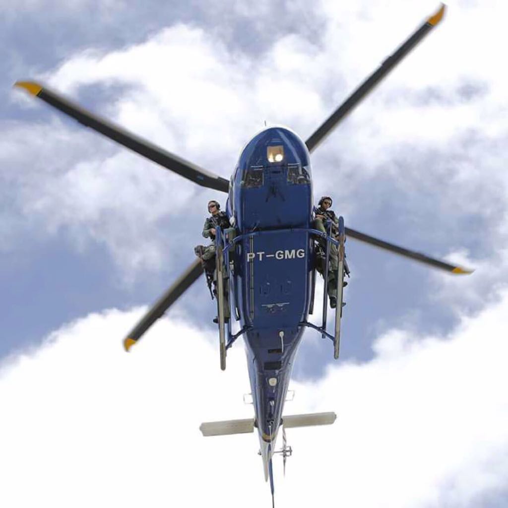 Helicóptero Falcão 05 do Grupamento Aéreo (esquilo AS350B3e) para resgate de pessoas. Foto: Divulgação Grupamento Aéreo.