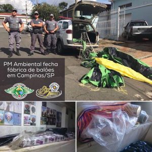 Nesta quinta-feira (16), a Polícia Militar Ambiental realizou a “Operação Balão” e conseguiu fechar duas fábricas clandestinas. Equipes da Polícia Militar Ambiental realizaram uma grande ação contra a fabricação e soltura de balões na capital paulista, Sorocaba, Jundiaí, Valinhos, Indaiatuba, Várzea Paulista, Campinas e Atibaia. Ao todo, foram 13 policiais e seis viaturas envolvidas nas ocorrências.