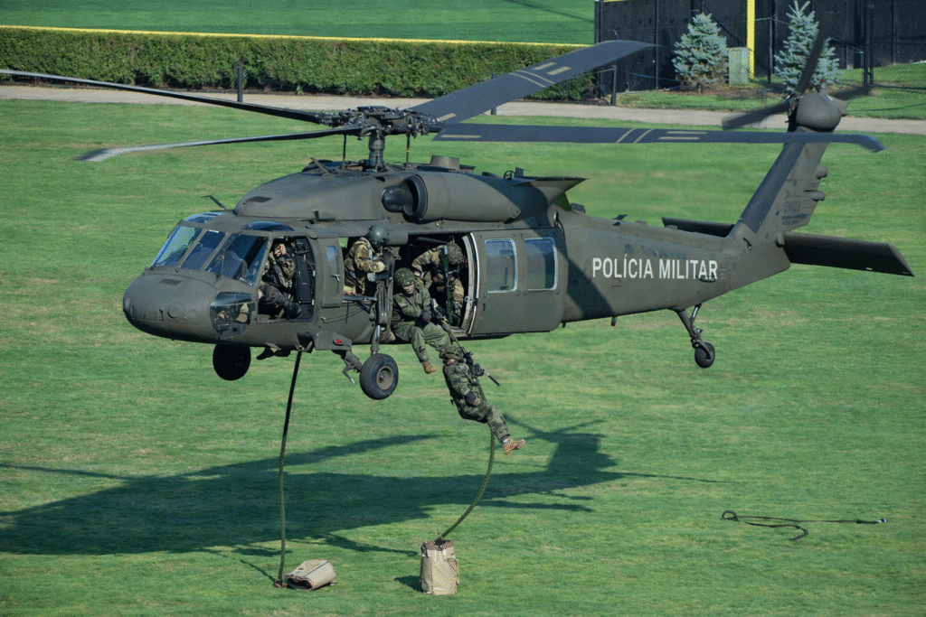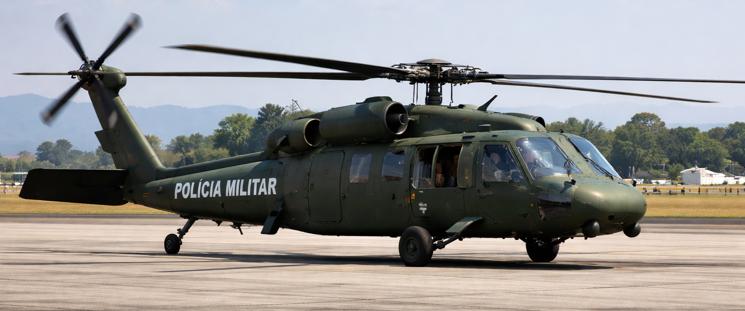 O helicóptero Black Hawk, reconhecido internacionalmente por sua robustez e versatilidade, é amplamente utilizado por forças policiais e militares em missões de alta complexidade, sendo considerado uma das aeronaves multimissão mais eficientes do mundo.