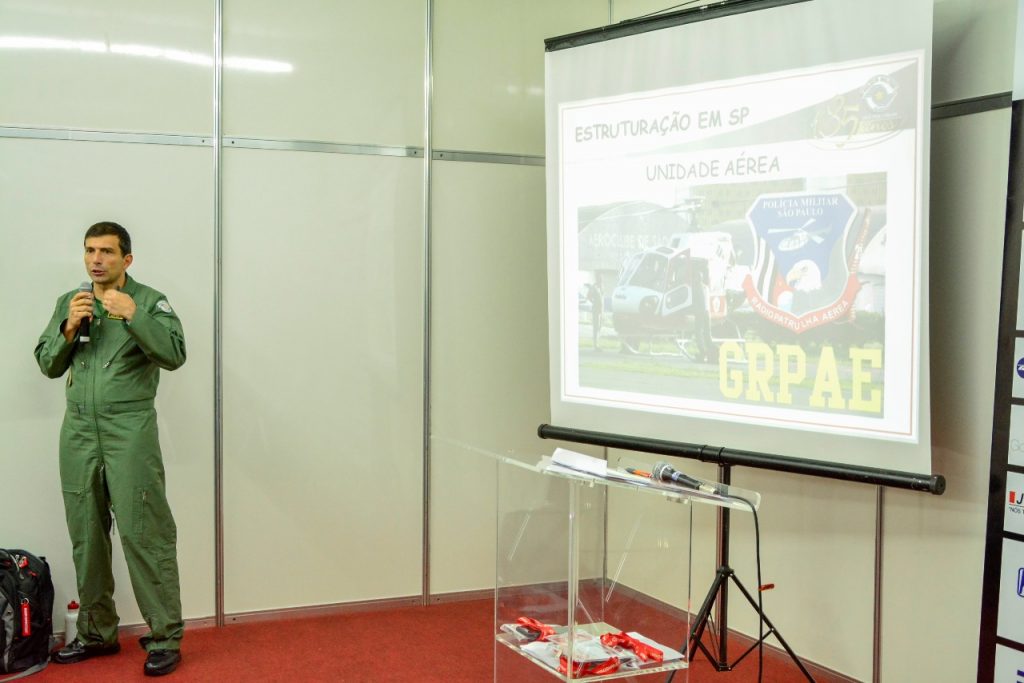 A última palestra do dia foi apresentada pelo Tenente Coronel PM Márcio Franco Borges, Subsecretário da Casa Militar do Espírito Santo e falou sobre a especialização do setor de manutenção de aeronaves na Aviação de Estado, apresentando aspectos de responsabilidade gerencial e segurança operacional. Além disso falou sobre o programa de saúde e segurança de voo implantado pelo NOTAer/ES.