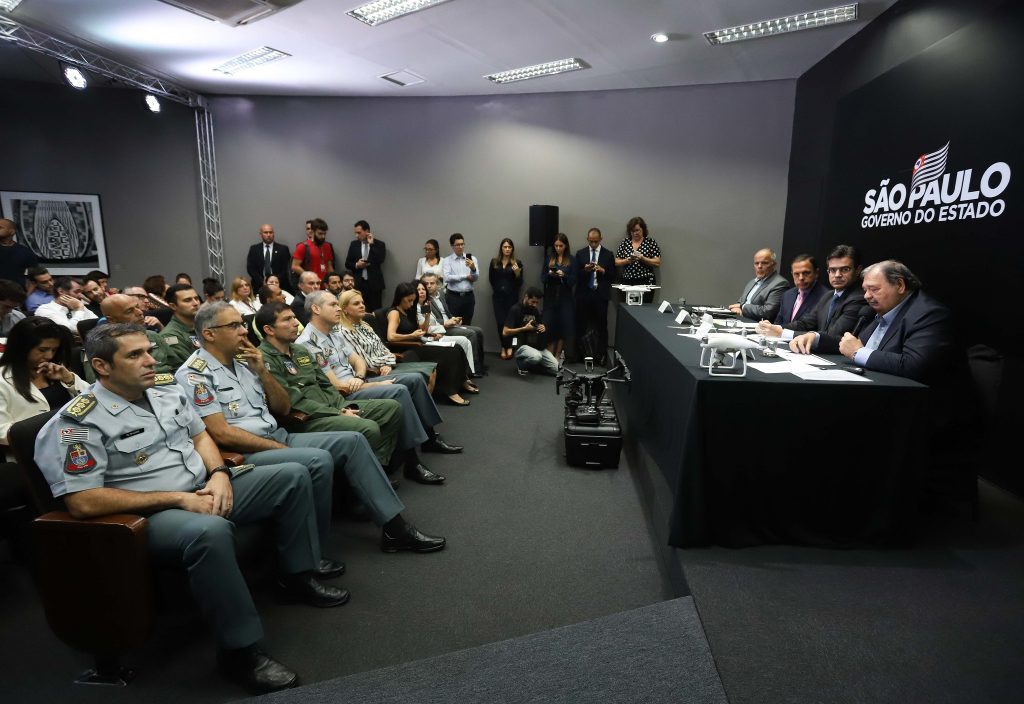 “O custo operacional para drone de alta tecnologia é 140 vezes menor do que o custo operacional de um helicóptero Águia da Polícia Militar. Com segurança absoluta, porque você não tem recursos humanos. E a funcionalidade e eficiência chega a ser superior, dado ao fato de que o drone pode fazer voos em baixa altitude”, disse Doria.