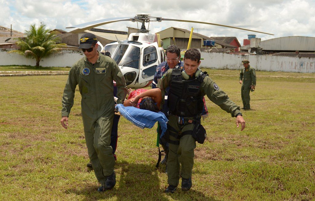 Pacientes de aldeia indígena são resgatados por helicóptero do Estado