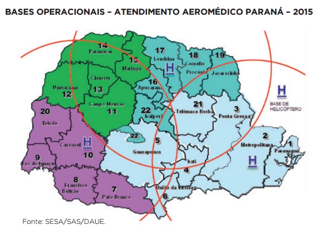 Em 2011, havia um helicóptero em operação em Curitiba. Atualmente, operam três helicópteros, com bases em Curitiba, Londrina e Cascavel, integrados aos SAMUs Regionais, e um avião UTI (Beechcraft King Air 200, PR-KEB) para transporte de pacientes críticos de todo o Estado.
